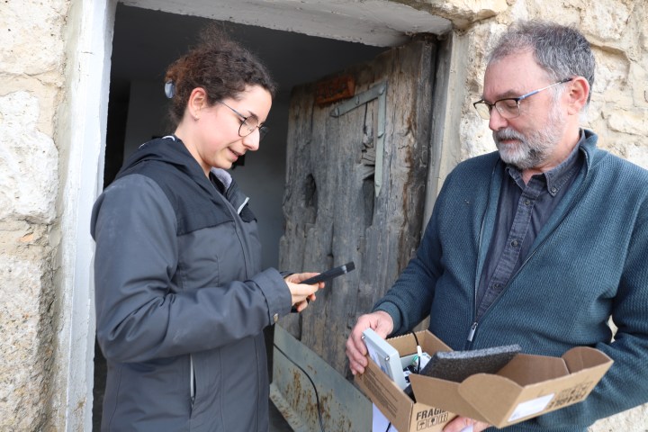 «Podemos analizar, por ejemplo, las consecuencias de un incremento del 20% en las precipitaciones anuales o de un aumento de dos grados en la temperatura media, ambos escenarios plausibles debido al cambio climático», explica Lidia Abad tras instalar y comprobar uno de los sensores junto a José Javier Anaya, investigador del CSIC y coordinador del proyecto.